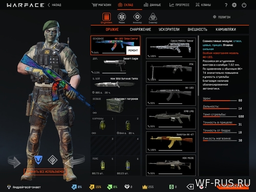 1)Альфа, Браво,чарли, 3 ежа и палка, 2 ромба и 2 палки,3 ромба и 3 палки,2 ромба и 2 палки, еж. 2)ак 103 злой санта, голд дигл,дигл,авм,аа12,м16а3 кустом, ак 47 калисо зима,сиг551,нож командо,мг3,скорпион вз 83,пв грач, мачете ка бар 3)на еже бк, на остальных нету ни бк ни привязки 4)есть личные есть обмен 5)Что вы хотите в замен. 5.1)Браво 5.2)хороший добротный 5.3)без бк без привязки. 5.4)без разницы 6)Скрины аккаунта.