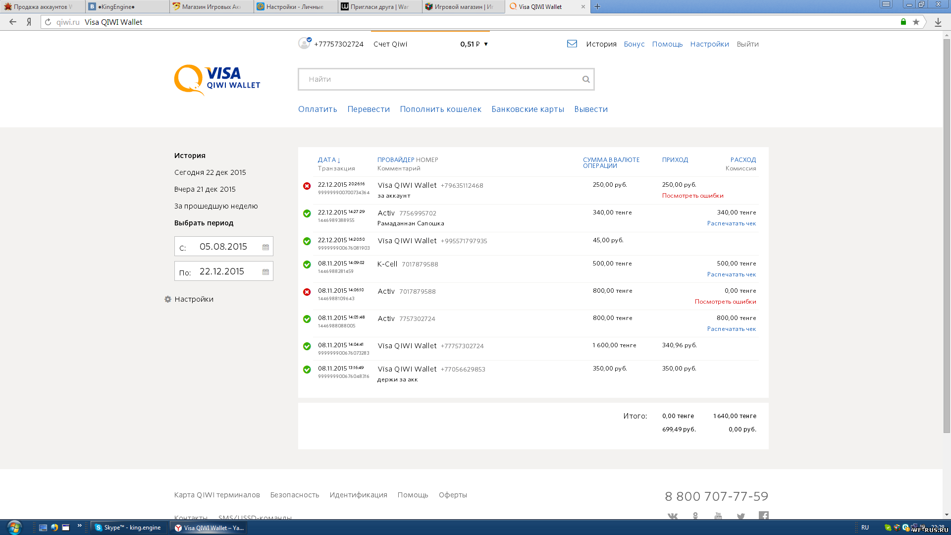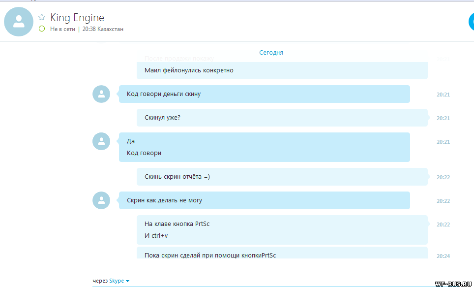 Ник-kingengine Продовал ему акк 2ежа на альфе за 45 Руб который не пришли мне за 20 мин.Он говорит что послал деньги в 14,09 а на скрине его истории киви 14,20 короче смотрите на скрины ниже(Также скинул скрины моего и его кошелька)